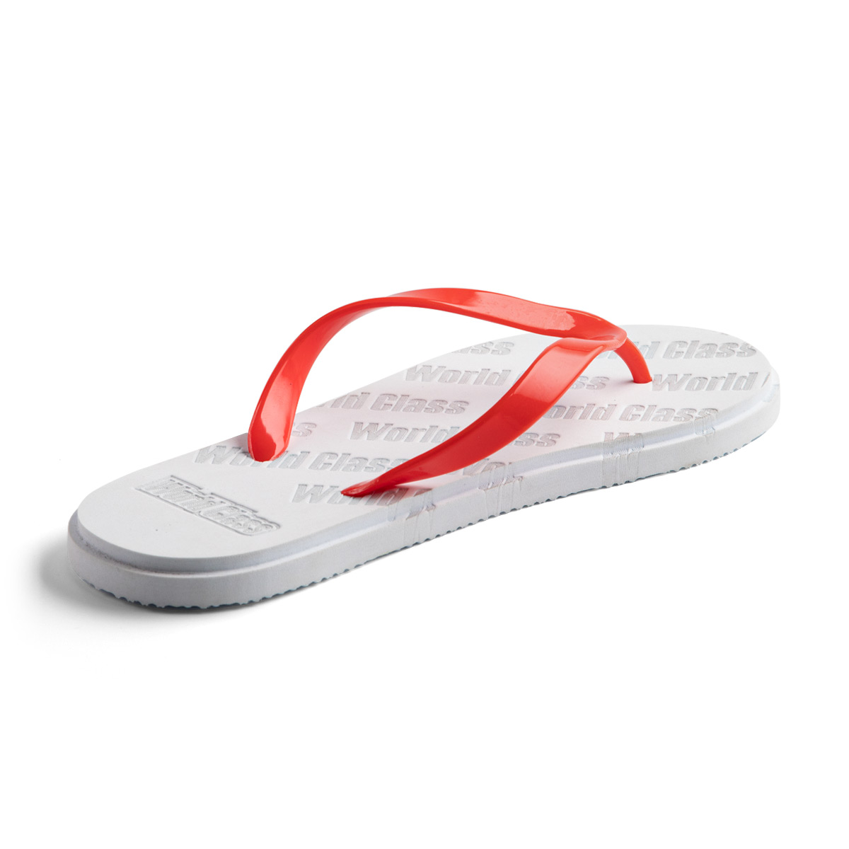 Шлёпанцы для сети фитнес-клубов World Class в фирменных цветах и с выгравированным логотипом. Это пример продукции – прорезиненных сланцев, которые вы можете заказать в компании Бифлекс. Сланцы – незаменимый атрибут для спортивных комплексов и курортных отелей.